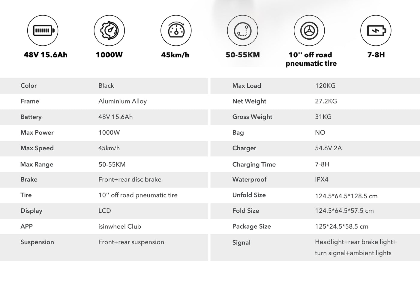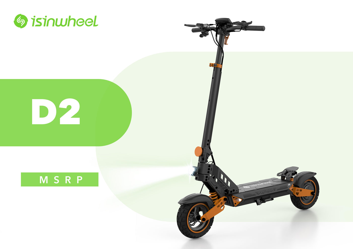 Monopattino elettrico Isinwheel D2 con batteria da 48V 15.6Ah, motore 1000 W, velocità massima di 45 km/h, autonomia di 55 chilometri, pneumatici fuoristrada da 10".