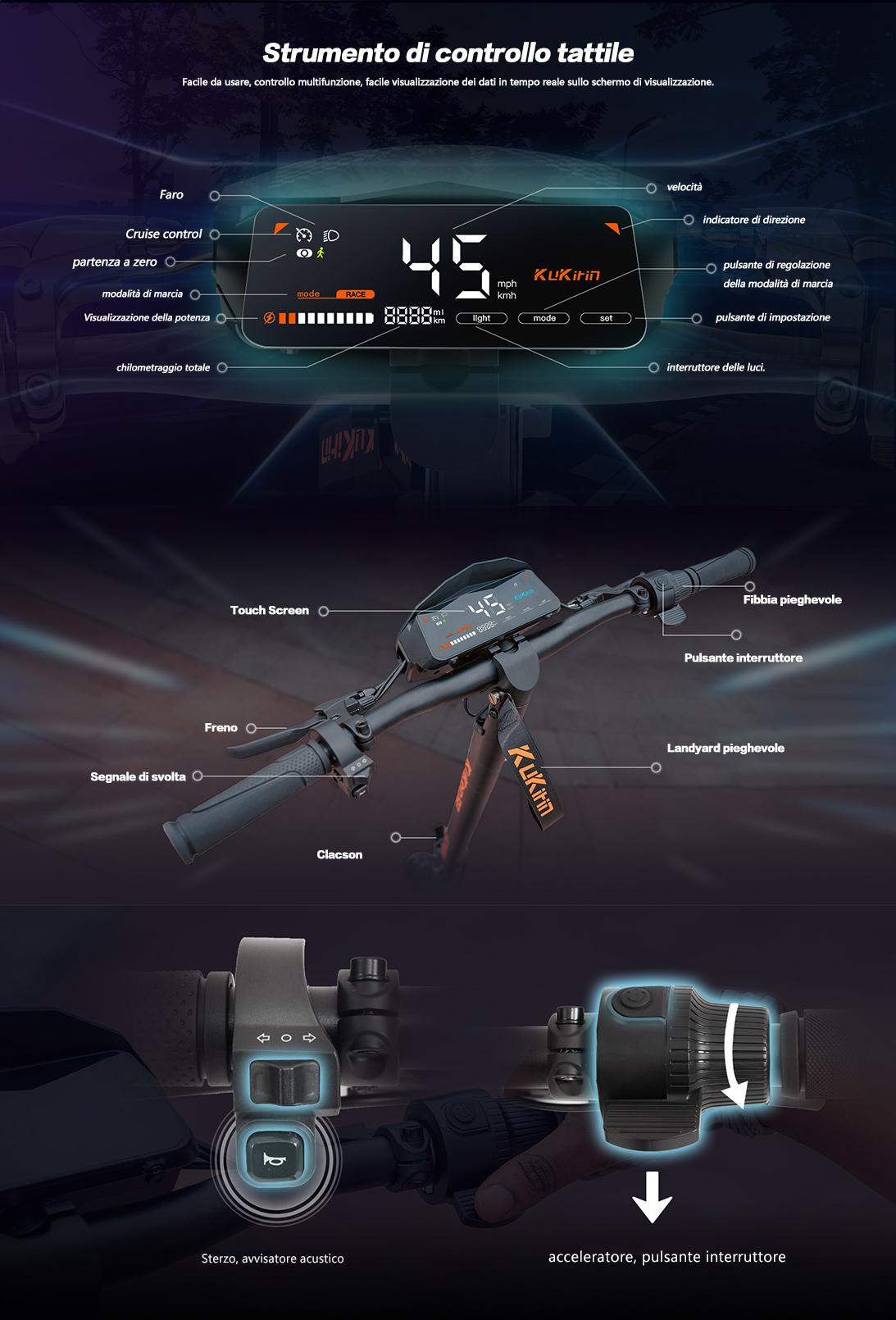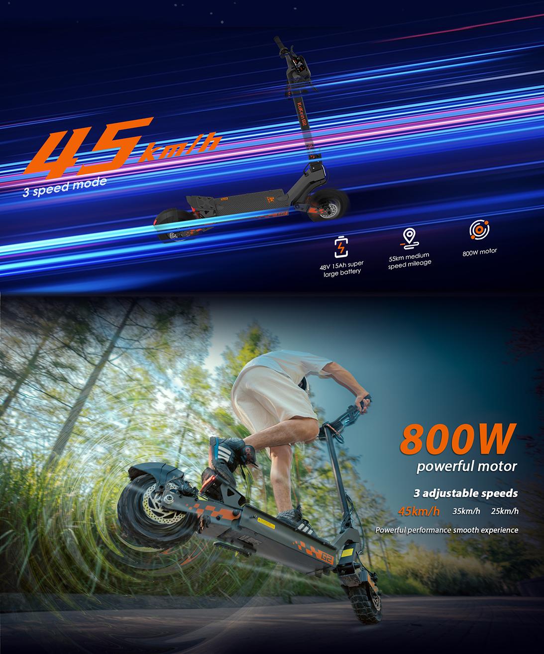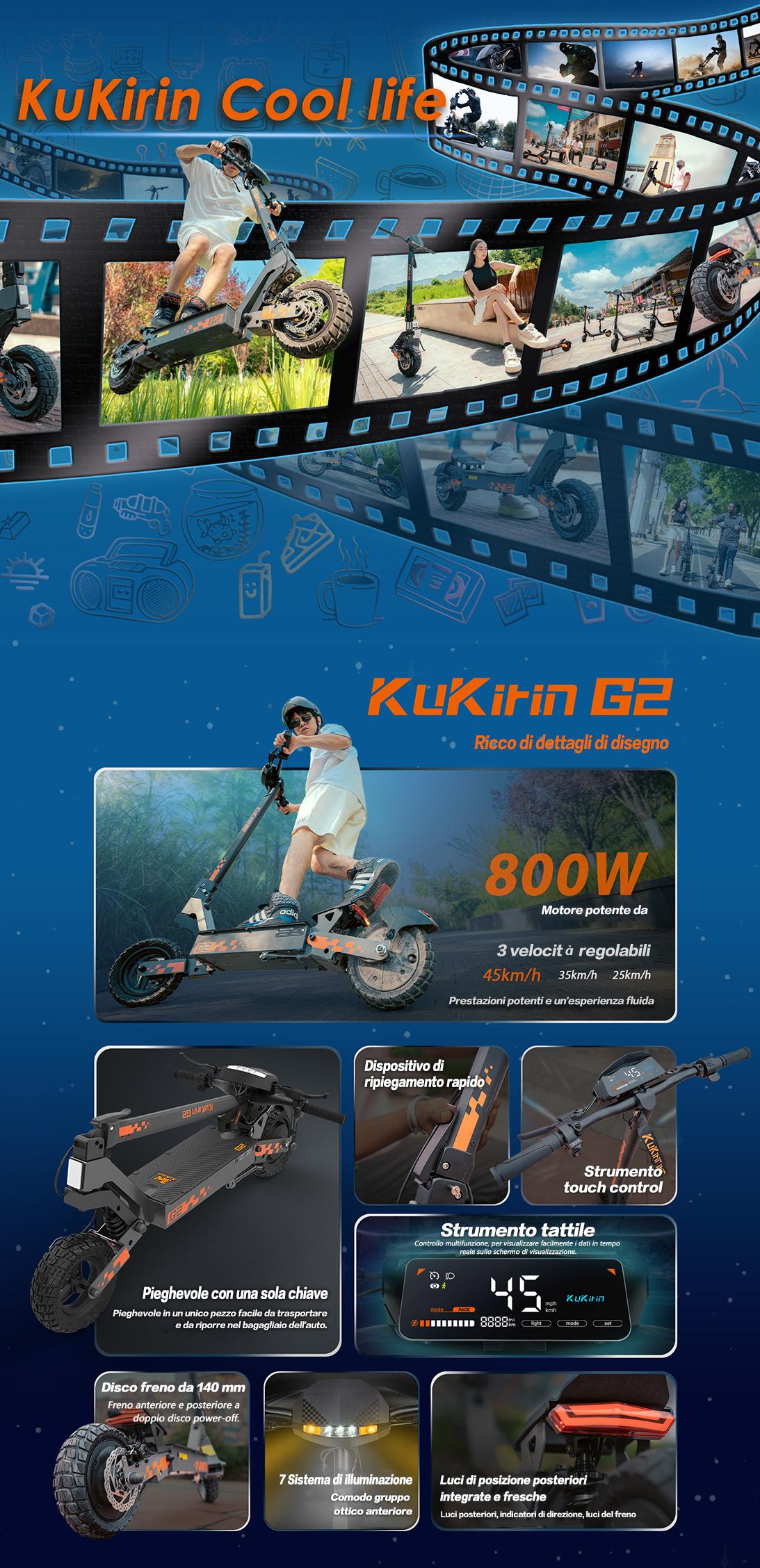 Monopattino elettrico KuKirin G2Ā con batteria da 48 V 15 Ah, motore brushless da 800 W, autonomia di 55 chilometri, velocitĆ massima di 45 km/h, pneumatici da 10".