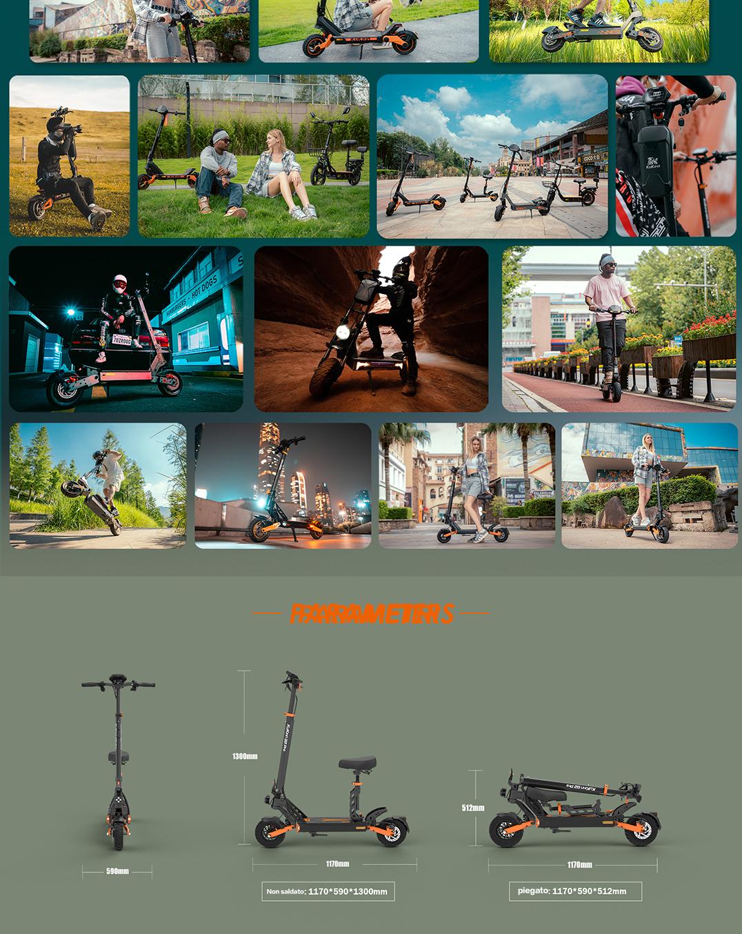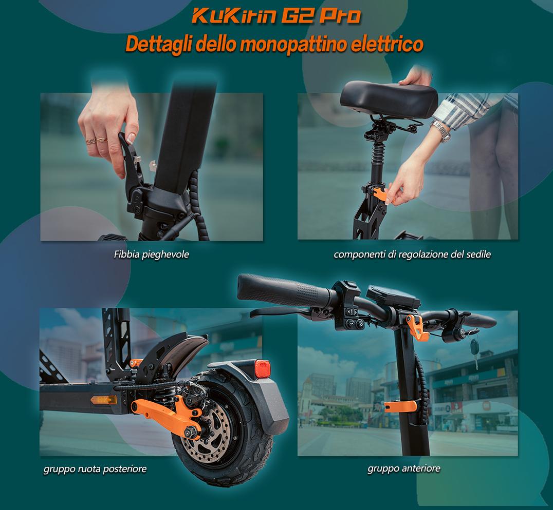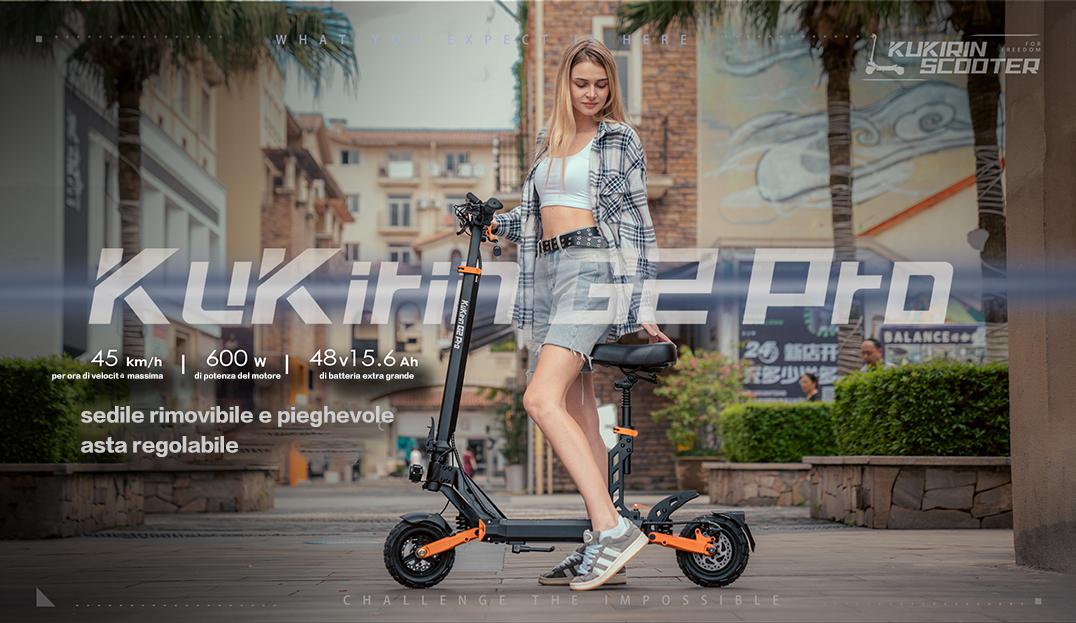 Monopattino elettrico KuKirin G2 Pro con batteria da 48 V 15 Ah, motore brushless da 600 W, autonomia 55 chilometri, velocità massima 45 km/h, pneumatici da 9".