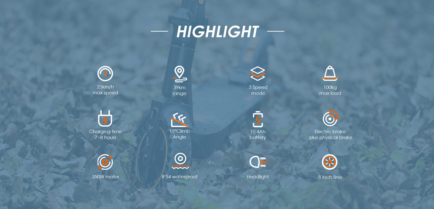 Monopattino elettrico KuKirin S1 Max, motore da 10.4 Ah, 36 V, 350 W, pneumatici da 8 pollici, autonomia 39 km, carico massimo 100 kg.