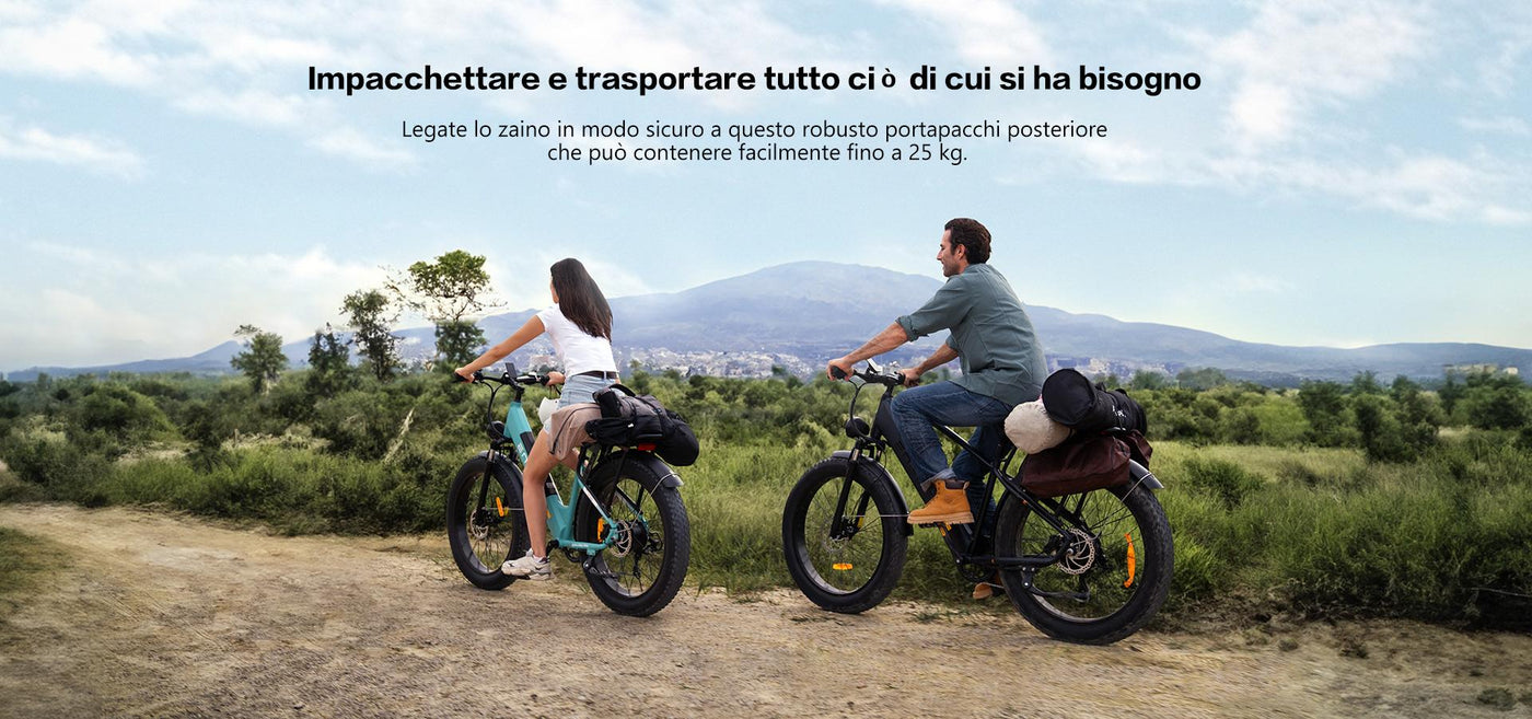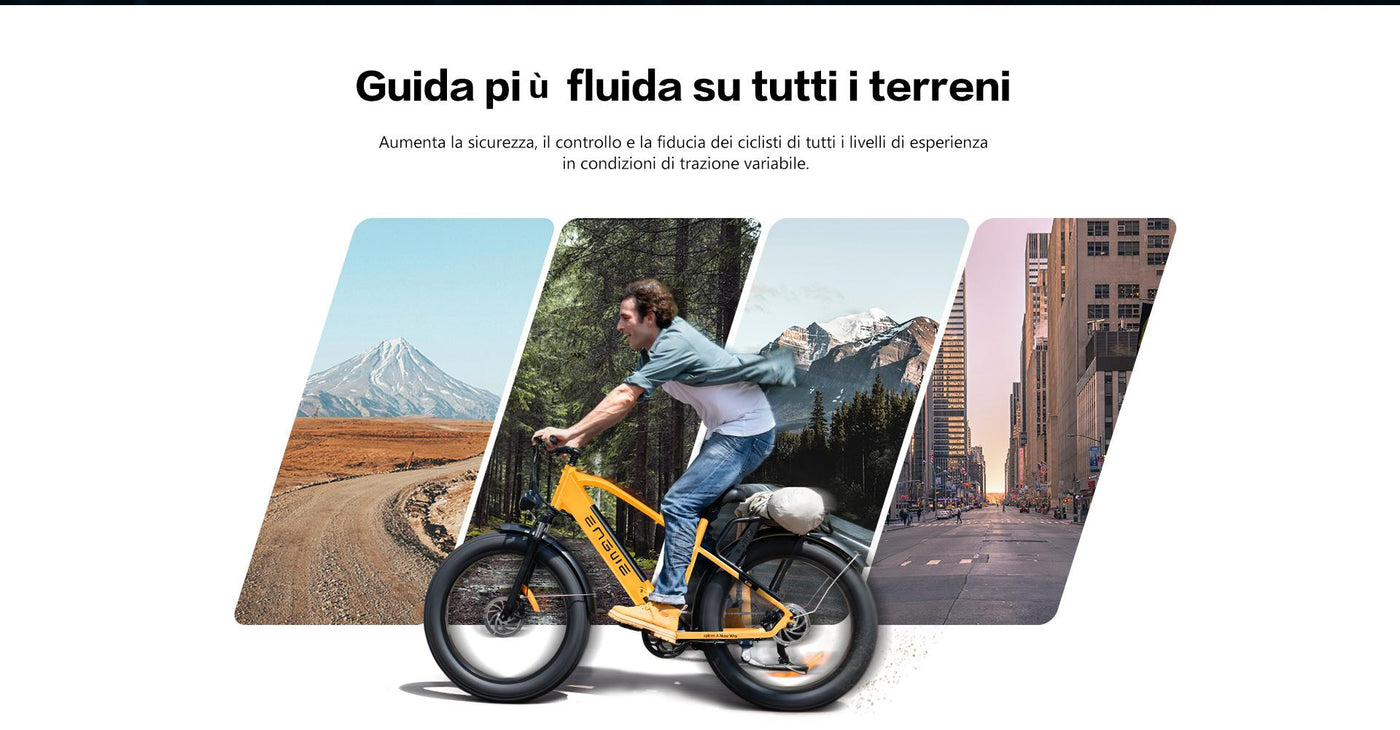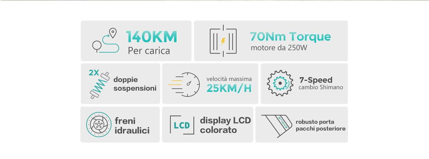 - VelocitĆ massima: 25KM/H (la velocitĆ effettiva varia a seconda del peso del ciclista e delle condizioni della strada)