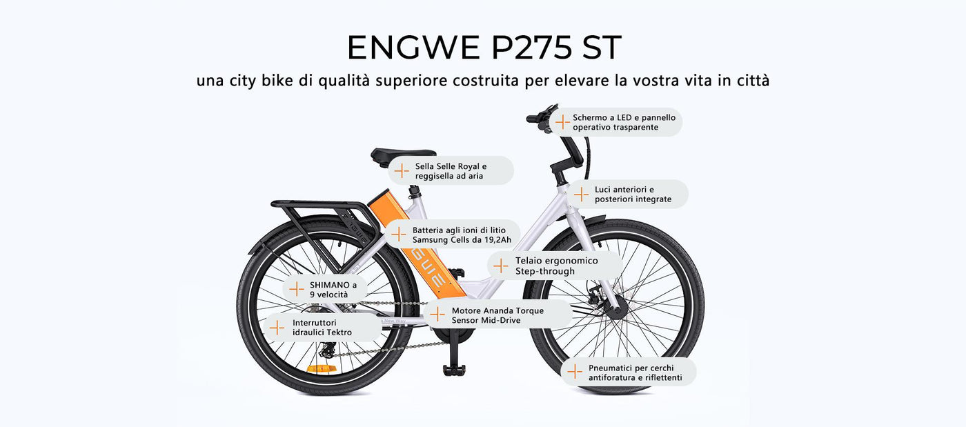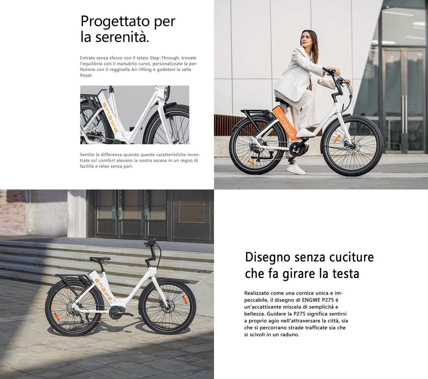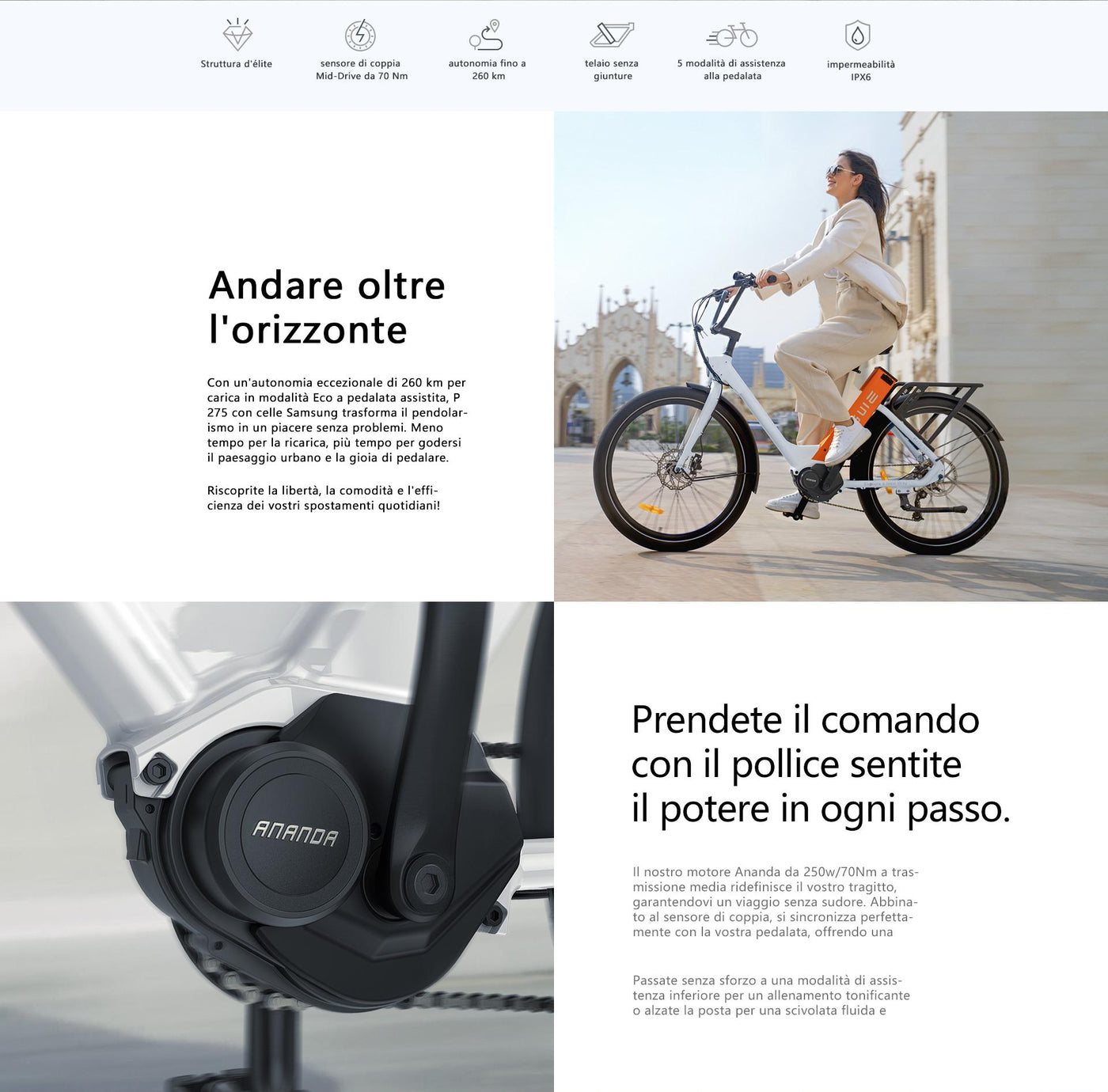 Bici elettrica urbana Step-Thru con motore centrale Ananda da 250 W e coppia di 70 Nm