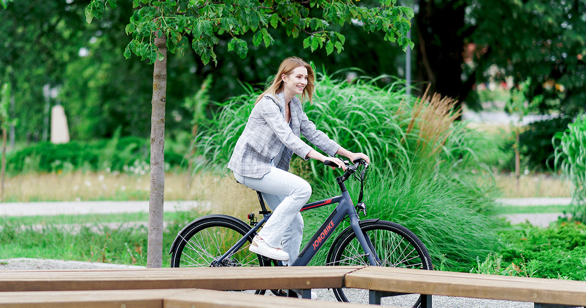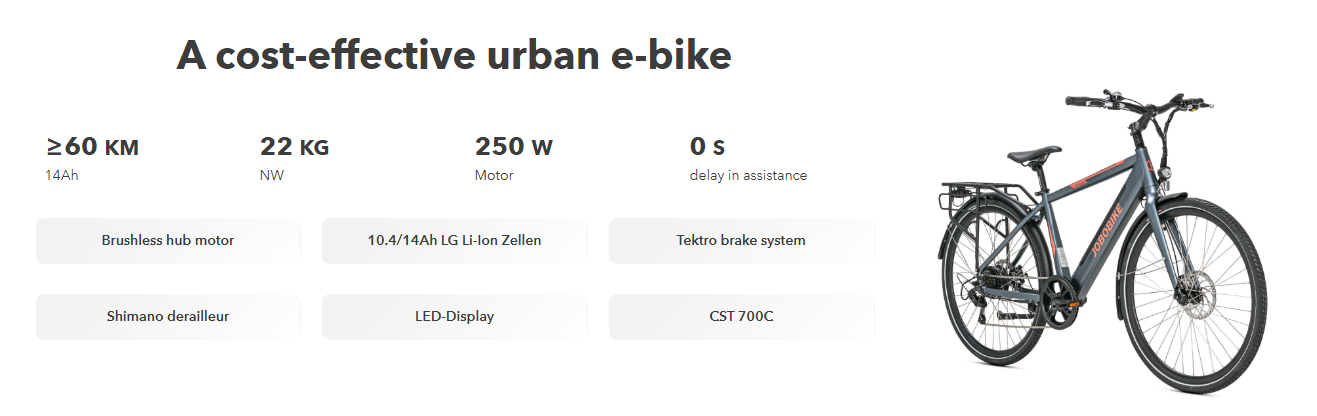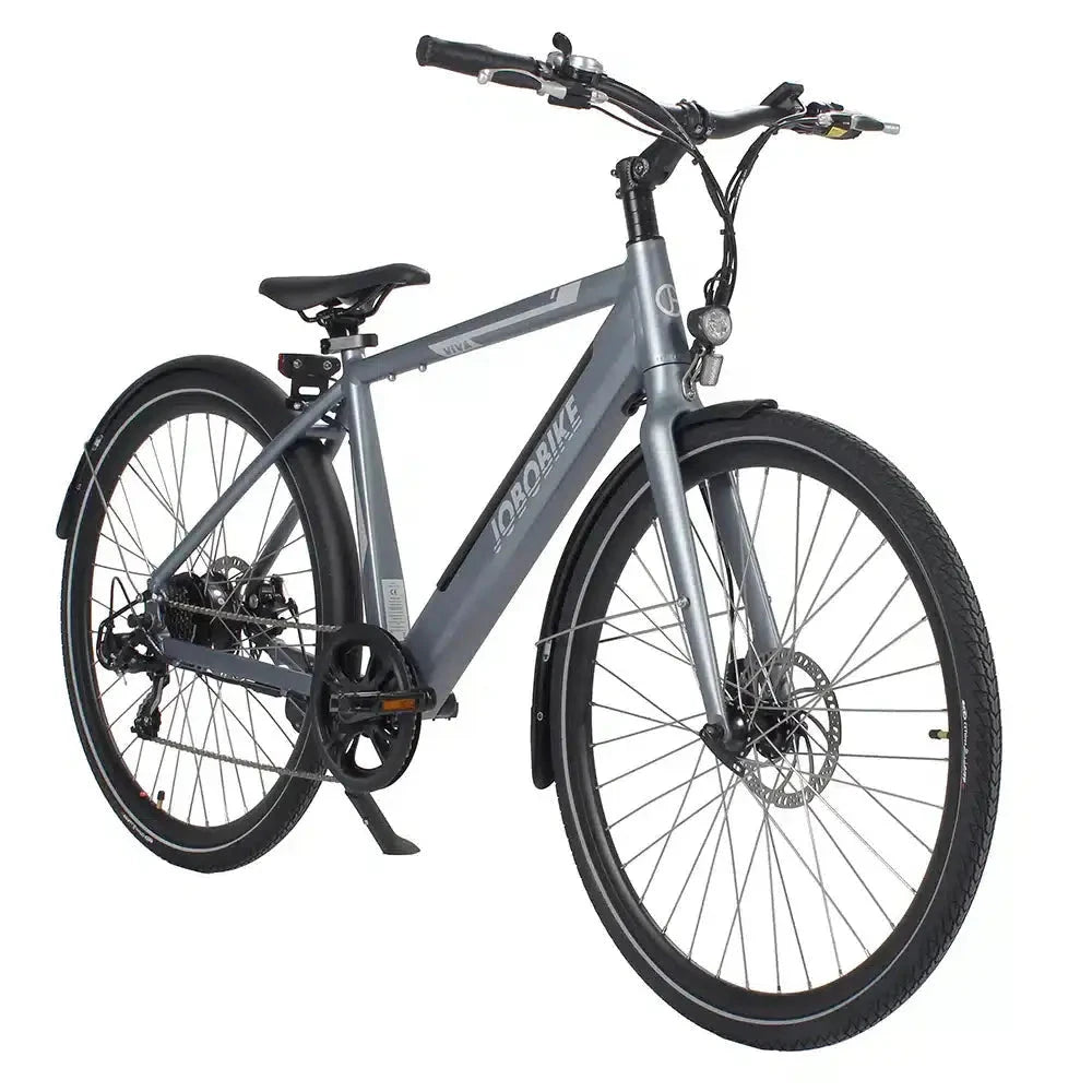 Bicicletta elettrica JOBOBIKE Viva 36V 10.4Ah/14Ah 250W, pneumatici 700C, cambio a 7 velocità. La bici elettrica Viva è il modello più leggero della famiglia JOBOBIKE, con un peso di 22 kg. Progettata per la città e per spostamenti quotidiani confortevoli.