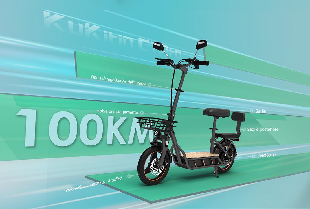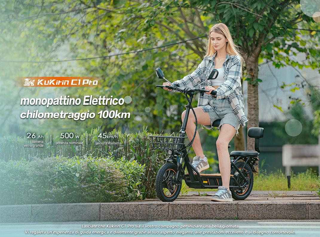 Kukirin C1 Pro 2024 Versione 48V 26Ah 500W (PICCO 802W) Monopattino elettrico pieghevole fuoristrada da 14 pollici con sedile, 100 km di autonomia, carico massimo 120 kg