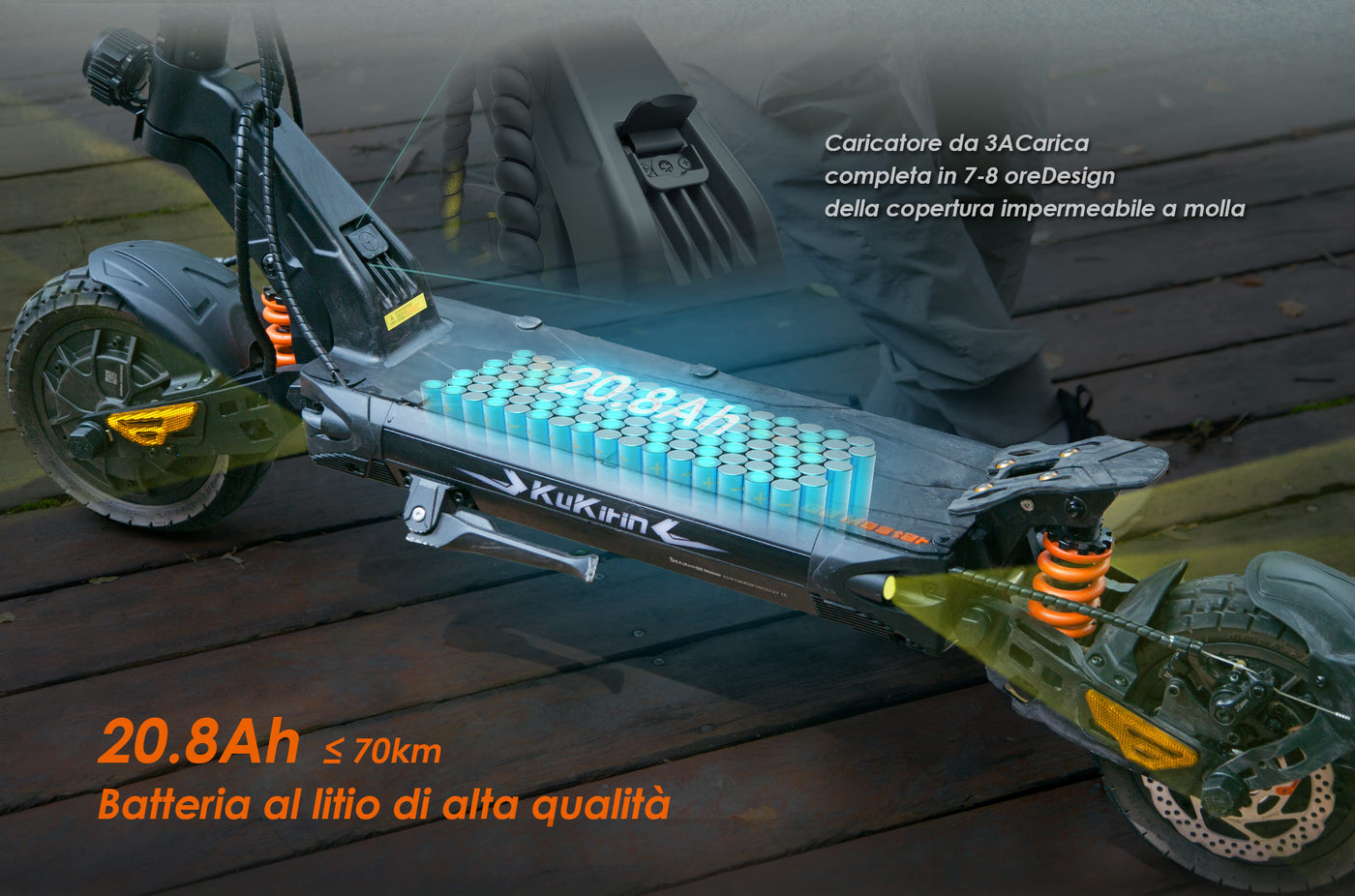 Monopattino elettrico KuKirin G2 MasterĀ vanta una batteria ad alte prestazioni da 52 V/20.8 Ah per viaggi prolungati. Con una singola carica, puoi percorrere fino a 70 chilometri, garantendo un'esperienza di guida comoda e duratura.