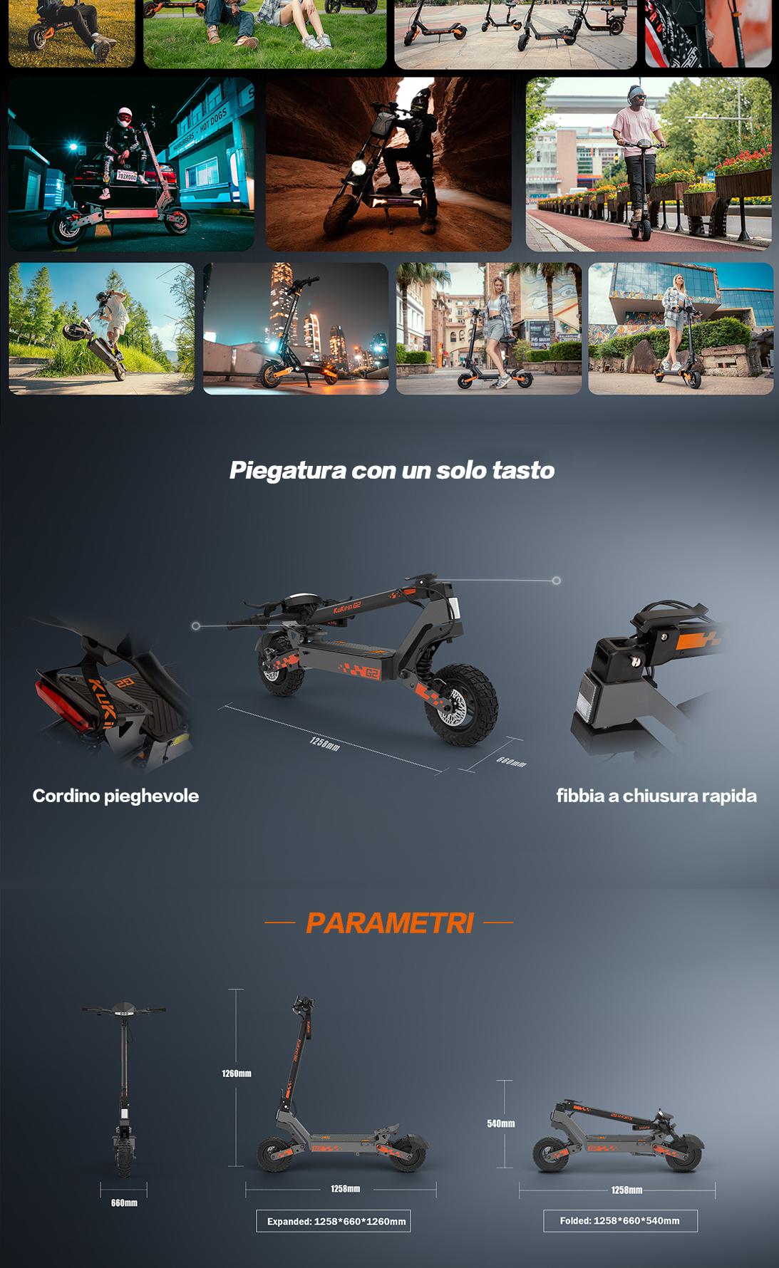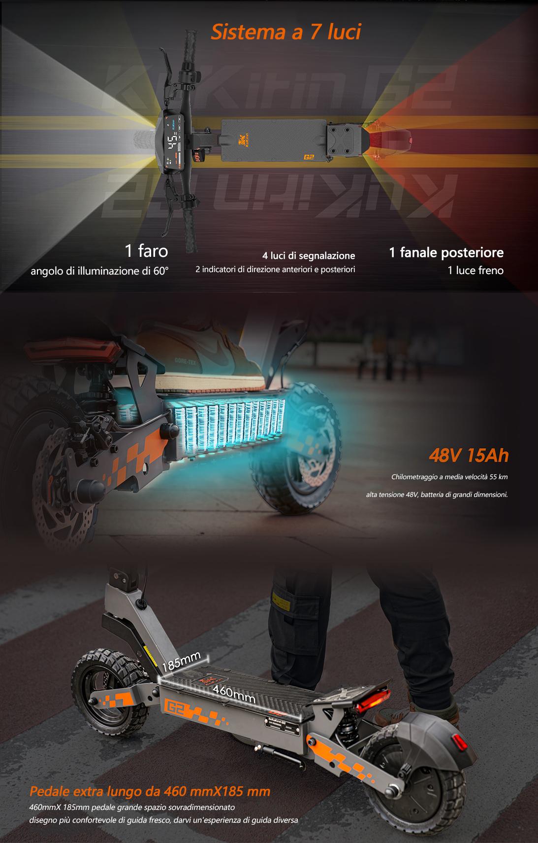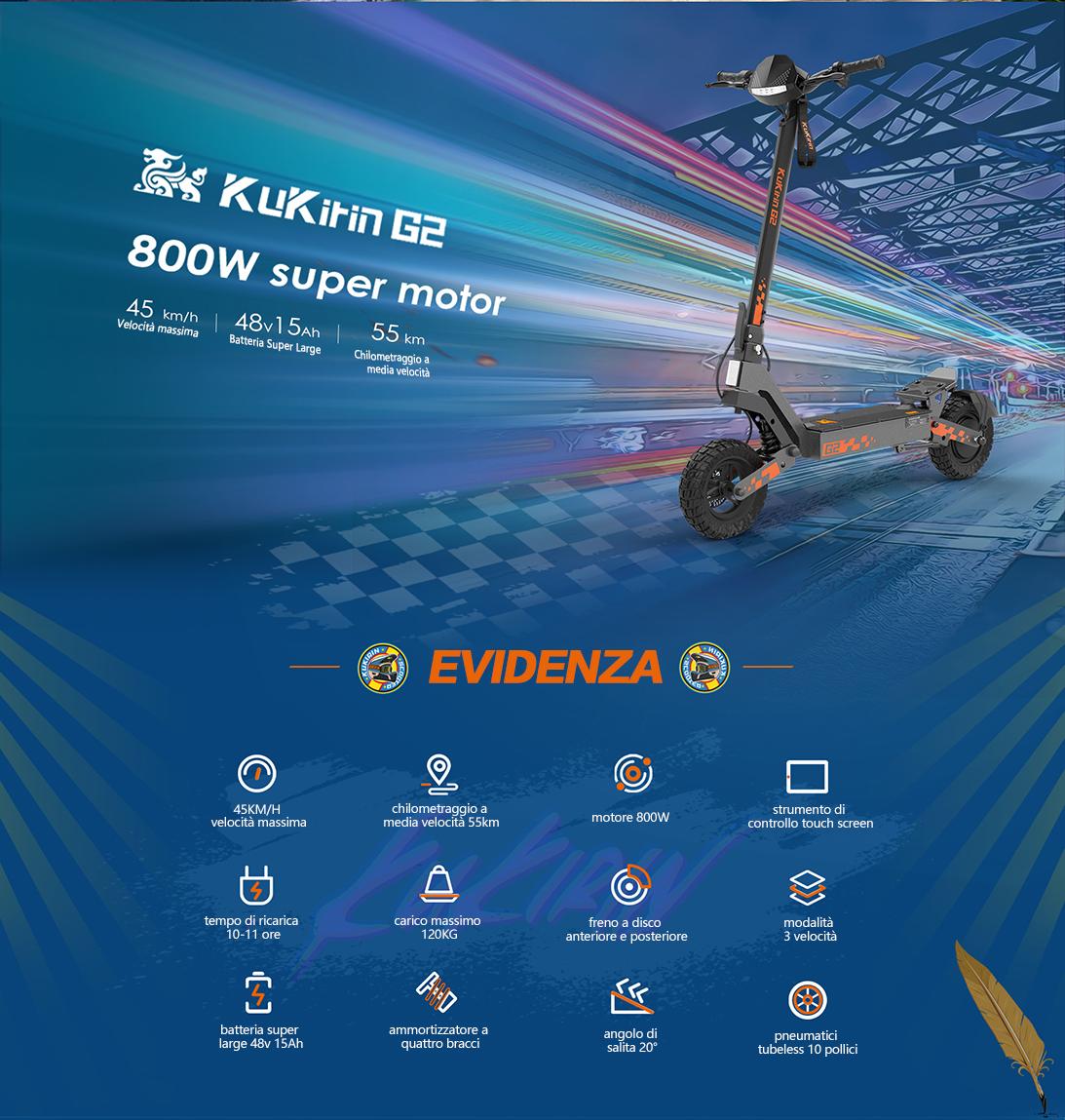 Monopattino elettrico KuKirin G2 con batteria da 48 V 15 Ah, motore brushless da 800 W, autonomia di 55 chilometri, velocità massima di 45 km/h, pneumatici da 10".