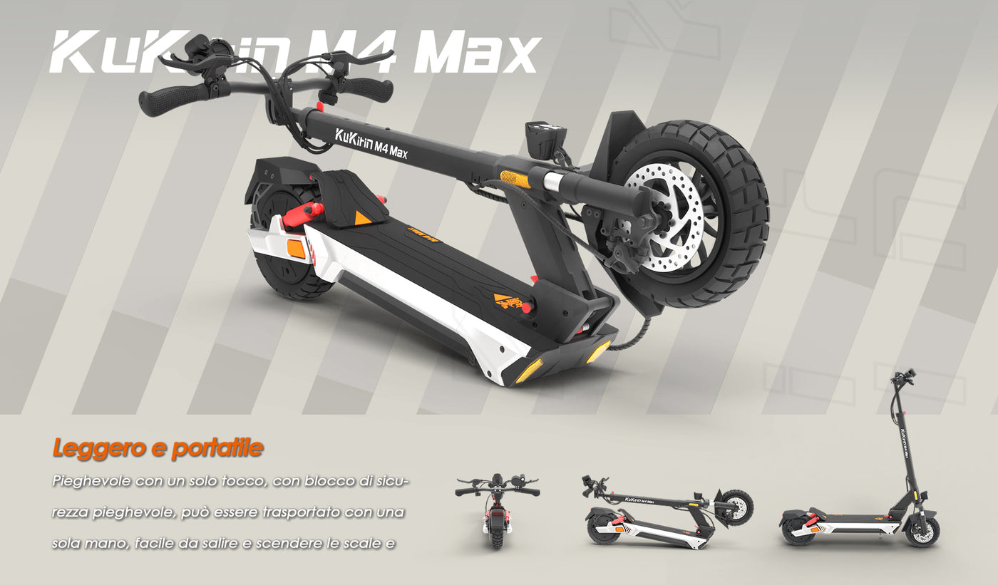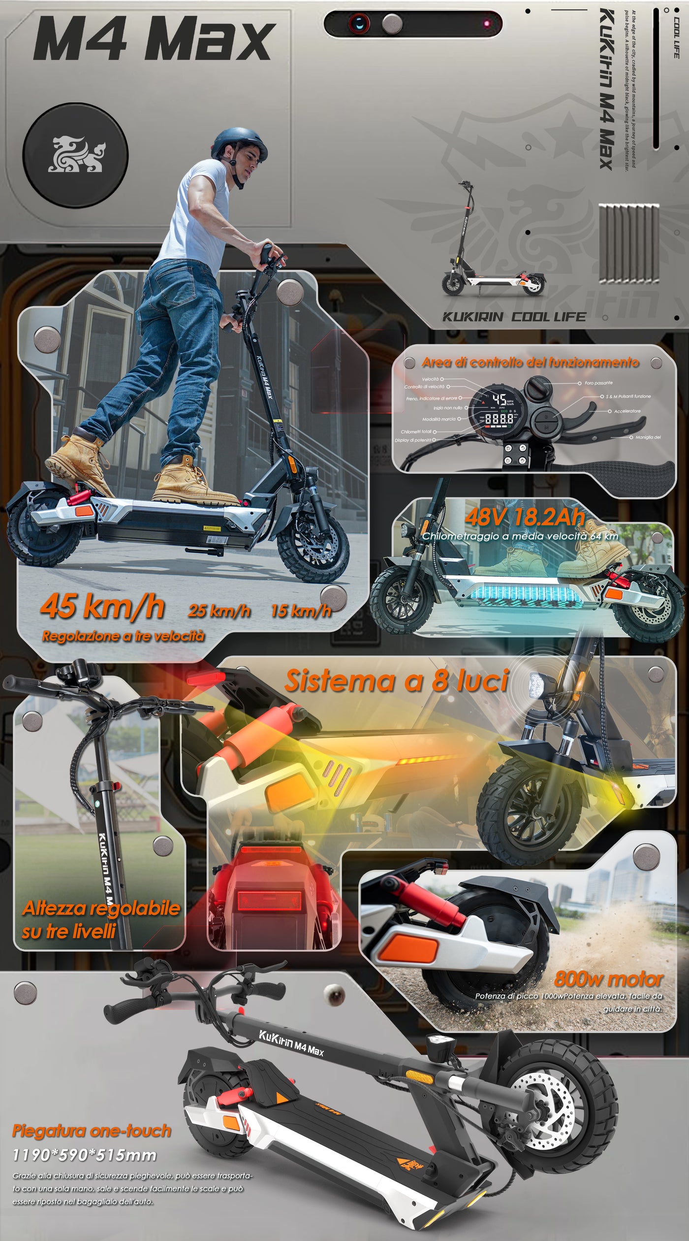 Monopattino elettrico KuKirin M4 MAX con batteria da 48V 18.2Ah, motore da 800w motori, autonomia di 64 chilometri, velocità massima di 45 km/h, pneumatico da 10 ".