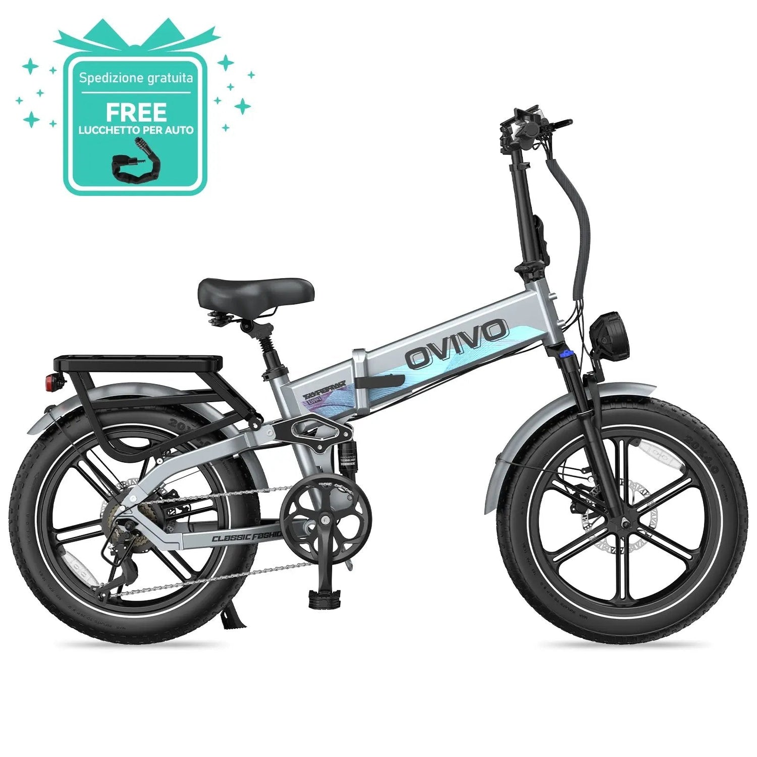 La OVIVO Hyper V2 Pro è una bici elettrica pieghevole con motore 250W, batteria 48V 20Ah, autonomia fino a 130 km e velocità 25 km/h, perfetta per ogni terreno e avventura!