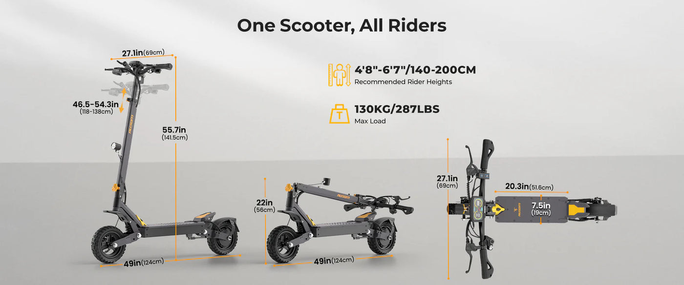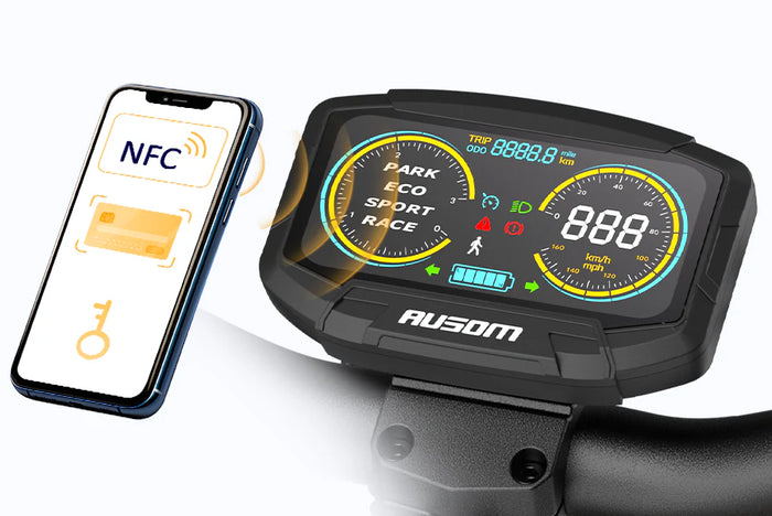 Monopattino elettrico Ausom L1 con batteria da 48 V 15,6 Ah, motore brushless da 800 W, velocità massima 45 km/h, autonomia 70 km, sospensione a doppio forcellone, blocco con codice NFC.
