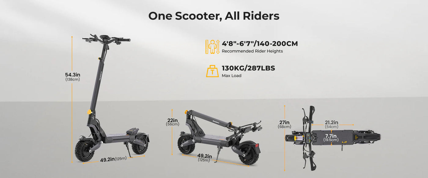 Progettato con pneumatici tubeless sottovuoto da 10"x3", L2 Dual Motor offre una trazione superiore su strade bagnate, ghiaia e superfici urbane sconnesse. Questi pneumatici per impieghi gravosi resistono alle forature mantenendo la stabilità. Che tu stia attraversando cantieri o percorrendo tragitti tempestosi, ogni viaggio rimane stabile e prevedibile.