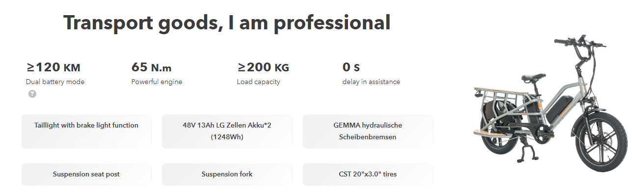 JOBOBIKE Transer Bicicletta elettrica 48V 13Ah 1248W Batteria agli ioni di litio Motore 250W con coppia 65 Nm Autonomia 120 km Carico massimo 120 kg